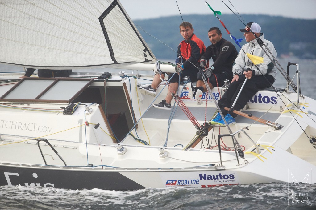 Pierwszego dnia przy wietrze o sile 14 – 18 węzłów i sporej fali radziliśmy sobie dużo lepiej niż nasi rywale i wygraliśmy wszystkie 7 wyścigów pierwszej rundy round robin . Zapewniliśmy sobie awans do ćwierćfinałów, które zostały rozegrane następnego dnia już przy dużo słabszym wietrze. 3:0 pokonaliśmy załogę Szymona Szymika. W piątek pogoda się popsuła, padał deszcz i długo czekaliśmy na wiatr. Przejaśniło się po południu i zaczęło lekko powiewać od brzegu. Do godziny 18.30 walczyliśmy o awans do finału ze Szwajcarem Erickiem Monninem, aktualnym mistrzem Europy i bardzo doświadczonym sternikiem nie tylko match racingowym. Dwa wyścigi odbyły się przy silniejszym wietrze, a dwa przy praktycznie kompletnej flaucie. Uważam, że przynajmniej ten ostatni powinien być przerwany, bo ściganie się w takich warunkach to loteria i nie ma nic wspólnego z match racingiem. Niestety więcej szczęścia miał Eric i dzień zakończył się stanem 2:2. W drugim półfinale załoga Przemka Tarnackiego pokonała Włocha Botticiniego 3:1.