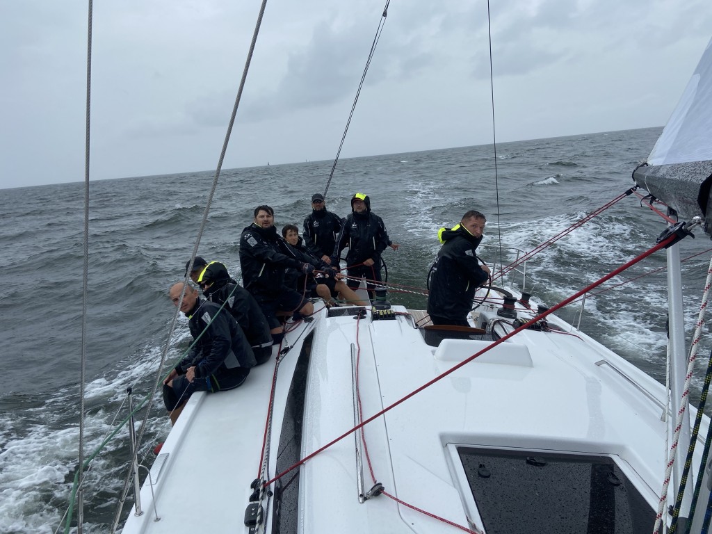 Niestety przez wszystkie wyścigi z wyjątkiem ostatniego siła wiatru nie przekraczała 6 węzłów, a często nawet 4. Czuliśmy duży ciężar jachtu i brak wyścigowego foka, którego nie mogliśmy użyć, bo nie dotarł na czas sztag. Ten ,,cruisingowy’’ na rolerze był ciężki i mniejszy, co na pewno miało duży wpływ na szybkość Konsala – bo tak nazywa się ten piękny jacht.